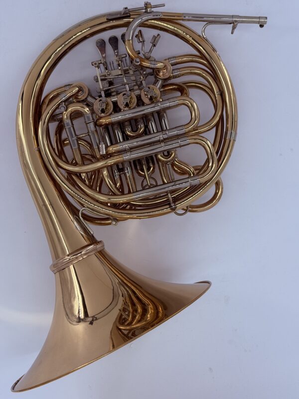 Gebr.Alexander 308 B/F/High F Full Triple : Gold Brass, detachable bell, Flipper, adjustable fingerhook, 3 extra waterkeys, lacquered (98%) including case. Serialnumber :#10XXX