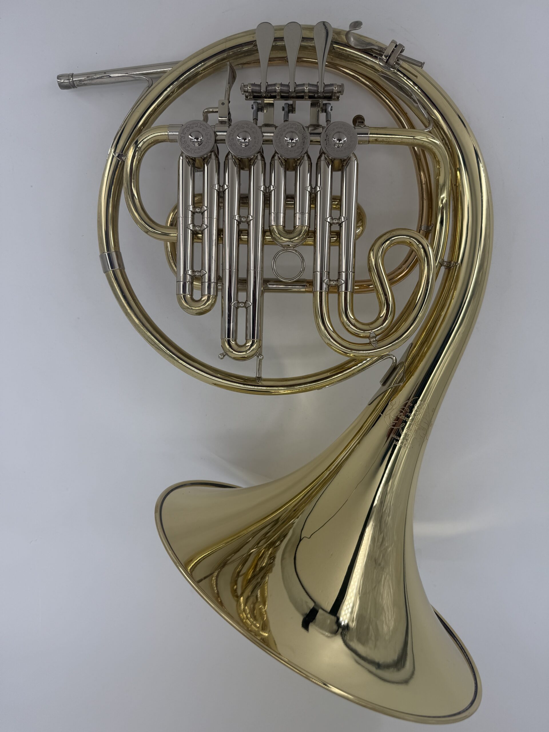 Hoyer 704 single B : yellow Brass, fixed bell, stopping valve, adjustable fingerhook, lacquered (90%) including case.