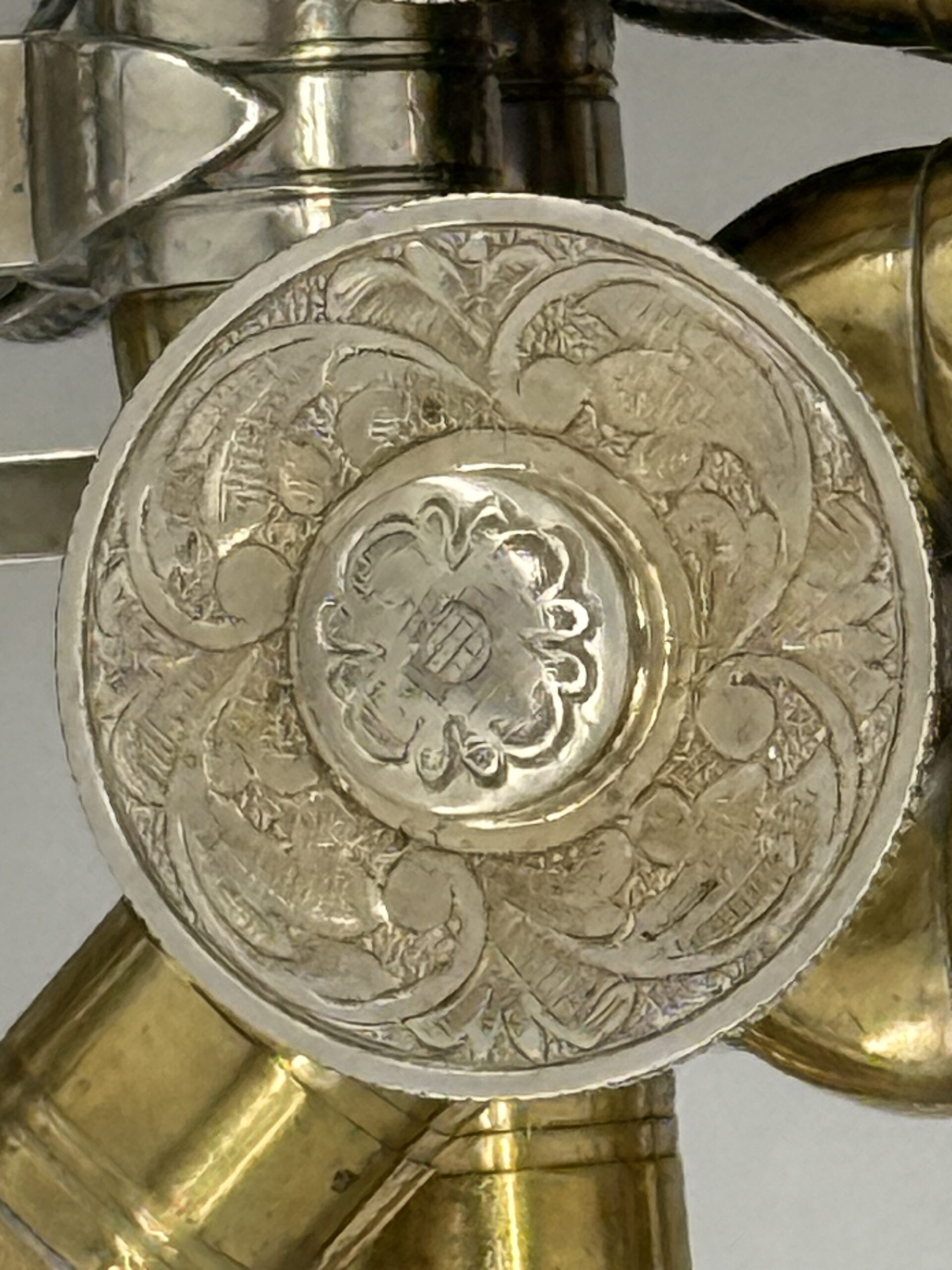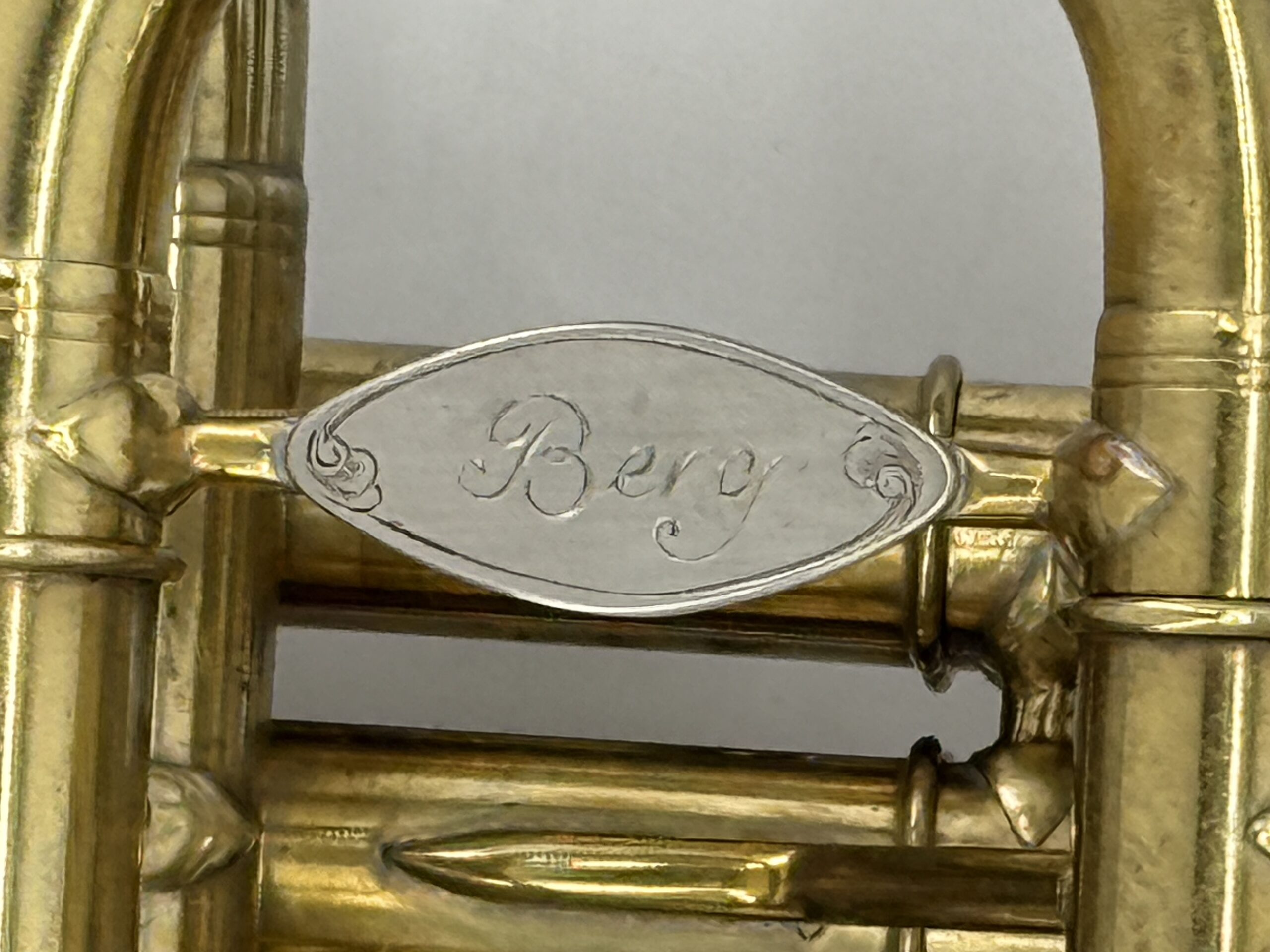 Berg B/F : Messing, afschroefbare beker met LOT, neusilber mondpijp, snoermechaniek, extra waterklepjes, ongelakt inclusief Gig Bag. serienummer #4061-160. Deze Canadese geweldenaar komt maar 1 keer langs !